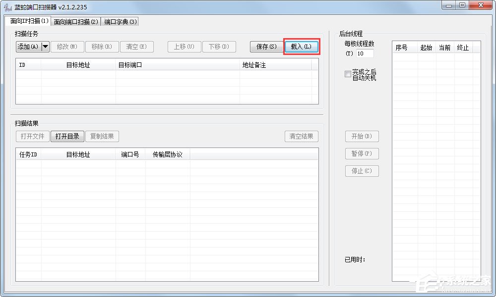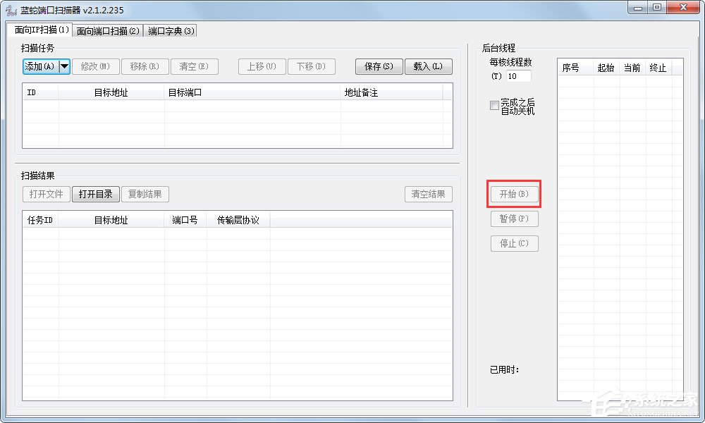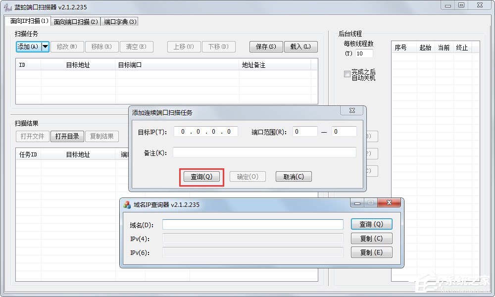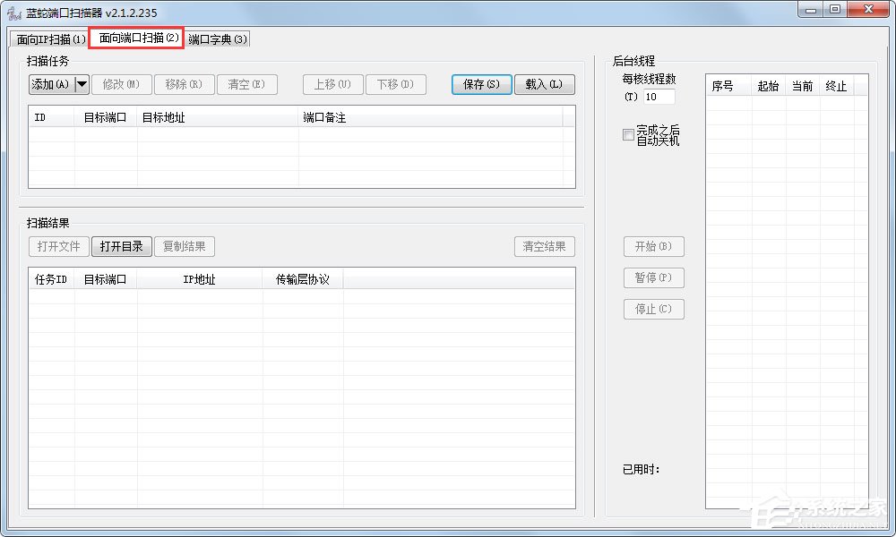 6、提供端口扫描功能,这里的设置界面和IP界面是一样的,自己配置任务即可;