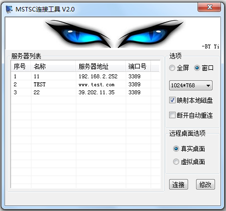 MSTSC(Microsoft terminal services client)绿色版是一款功能强大的远程桌面连接软件,界面朴素简单,操作容易,添加服务器名称、地址等即可,是款简易的远程桌面连接软件,可以记录多个服务器的连接设置,点击即可连接,具有支持映射本地磁盘以及真实桌面和虚拟桌面的功能,可以满足用户基本的远程桌面连接需求。
