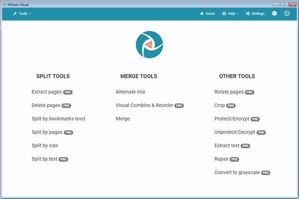 PDFsam Visual是一个可视化的PDF工具,PDFsam Visual可以用可视化的方式撰写文档、重新排序页面、提取或删除页面、拆分、合并、旋转、加密、解密、修复、提取文本、转换成灰度、裁剪pdf文件!