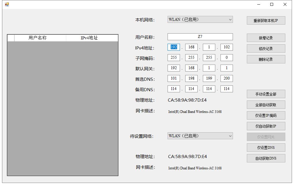 IP小工具是款针对电脑中IP所打造的获取本地IP并进行修改工具,支持储存多个IP信息和hosts文件信息到本地文件,通过软件实现来回切换的功能,还可以对本地的DNS、子网掩码进行快速编辑,其左侧为存储列表区域,就是可以存储多个ip信息到本地文件,方便来回切换。