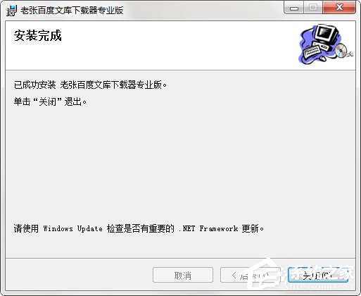 5、最后,老张百度文库下载器安装完成,单击【关闭】即可开始体验。