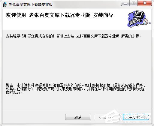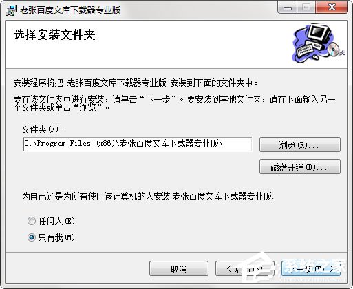 1、请在该页选任意地址将老张百度文库下载器下载至本地,将软件包解压并运行包内安装程序;