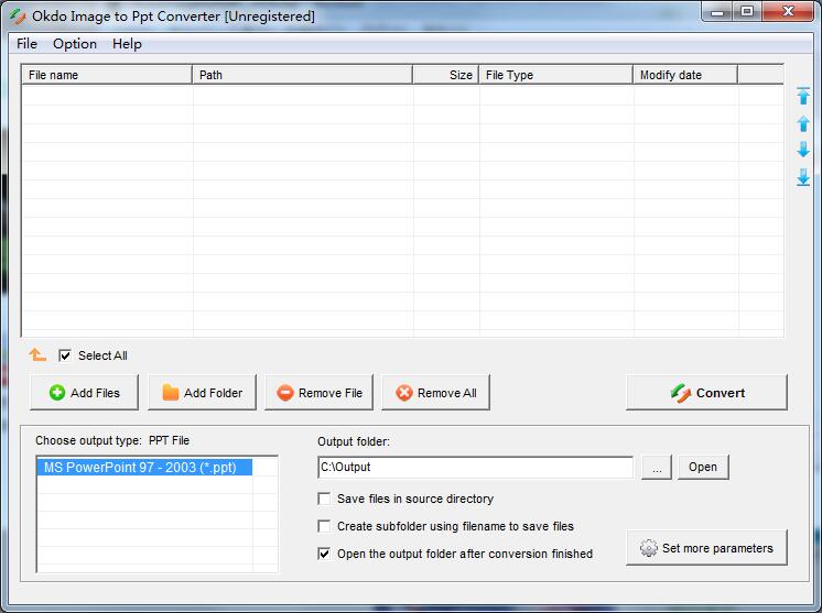 Okdo Image to Ppt Converter是一款能够将jpg、jpeg、bmp、gif、tiff、wmf、emf、png等图片格式快速转换为PowerPoint的PPT格式,换速度快,输出质量高,是一款相当优秀的软件。