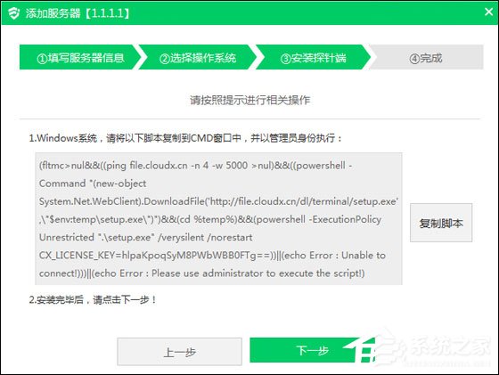 使用远程管理工具登录远程服务器,并使用管理员身份执行探针端安装操作!