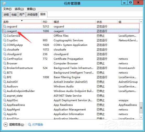 2.2. 查看任务管理器中的服务,服务名为cxagent 如图表明已经探针已经启动。