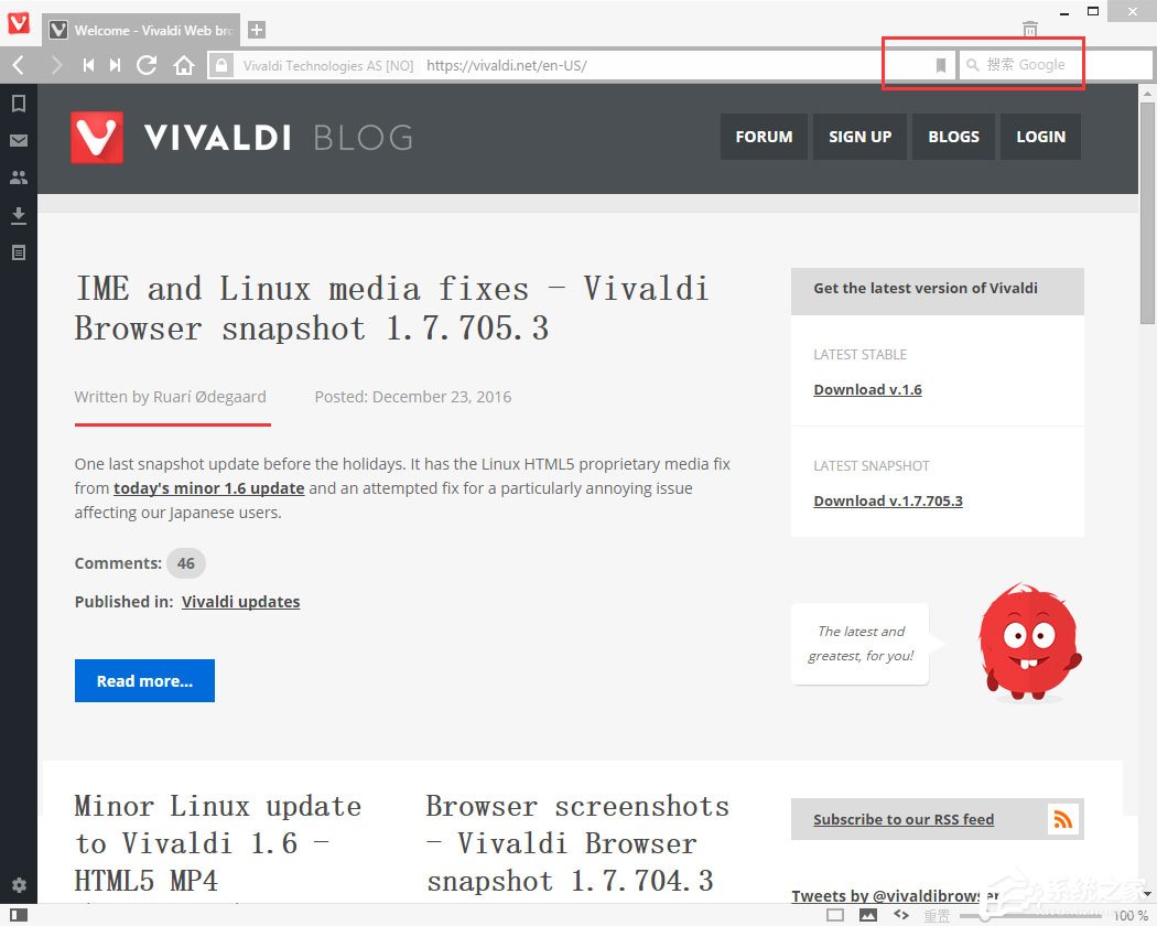 Vivaldi浏览器浏览器的布局与Opera浏览器非常相似,菜单项位于浏览器的左侧。