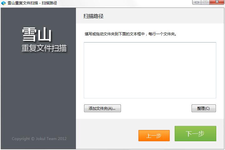 选择要扫描的文件夹,可以拖动文件夹到文件框中:(点击添加需要对比的文件,进行整理)。