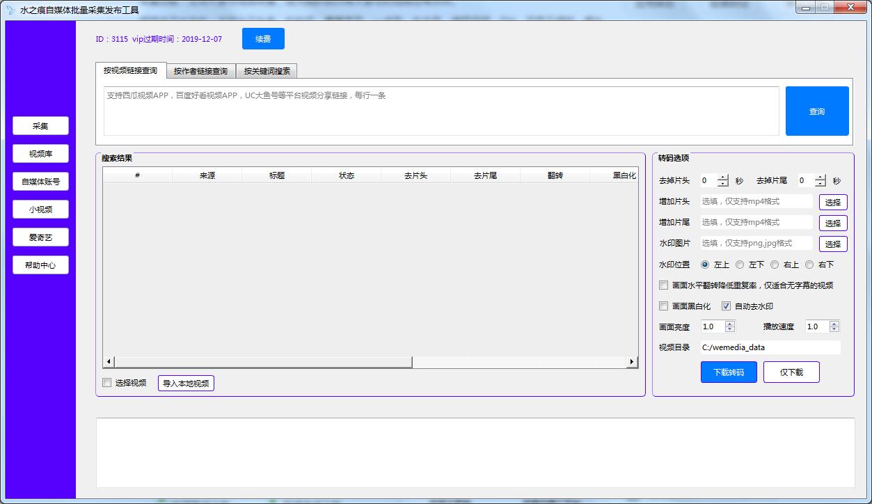 自媒体采集发布工具上线,现阶段只支持视频采集发布,仅支持windows系统。