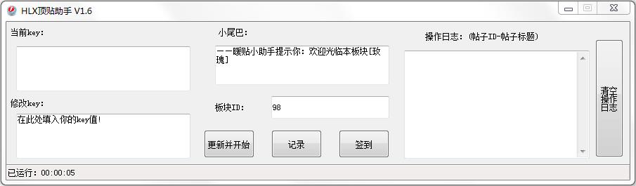 HLX顶帖助手是一款论坛顶帖软件,通过抓取key值和版块ID来自动顶帖,同时为避免系统检测而设有延迟,有需要的小伙伴可以下载使用。
