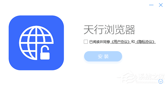 1、在该页选任意地址将天行浏览器(跨境电商浏览器)下载至本地并解压运行,勾选“用户协议”。