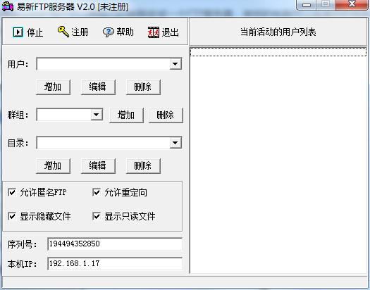 易新ftp服务器是一款FTP服务器软件,通过获得独立的IP用户可以将自己的电脑变成一个FTP服务器,其他的电脑可以连接你的电脑并实现共享软件的功能,如果IP是固定的服务器,也可以将服务器IP设置为最终服务器,对软件进行上传下载等操作。
