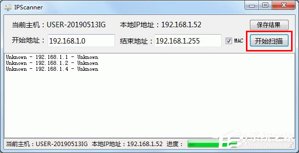 二、点击开始扫描,即可扫描出本地所有的IP地址以及端口的情况。