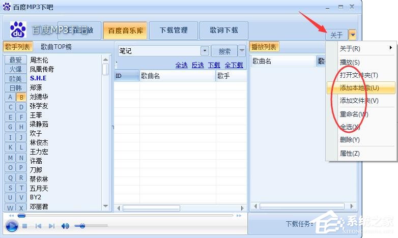 3、当然你根据下图来添加本地音乐文件,手动添加到百度MP3批量下载器下载列表中;
