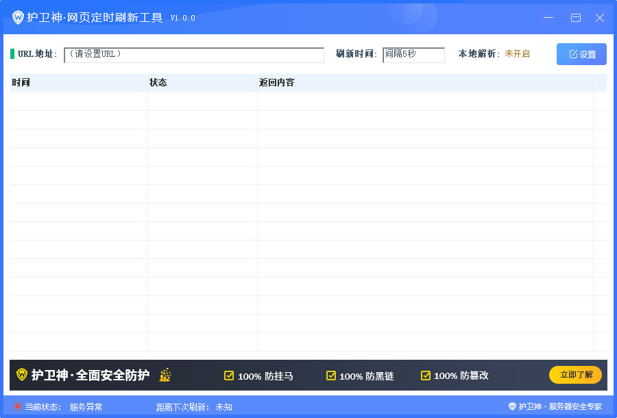 护卫神网页定时刷新工具是款由护卫神官方打造的网页自动刷新工具,用户可以自由的设置时间定时刷新网页页面,非常好用。有喜欢的用户不要错过了。