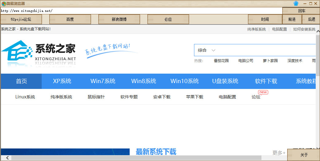 简易浏览器是一款由易语言编写而成的网页浏览辅助小工具,这款简易浏览器比起主流的360、百度、谷歌等浏览器,在体积上占有很大的优势,这个程序不足2M,又绿色免安装,即开即用,是你浏览网页新的选择。