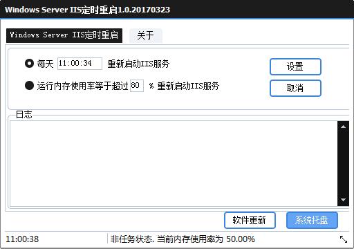 Windows Sever IIS定时重启工具可以通过定时,定内存使用率来自动重启IIS服务,这样的操作能够提升windows Sever服务器的服务效率,很多站长都服务器出问题,其实大部份服务器的问题就是IIS死掉,重启一下就行了,非常方便。