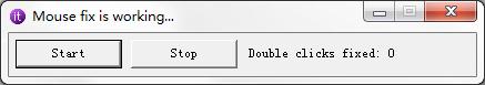 它不需要任何的设置,只需要打开后点击Start就可以了,然后最小化,它会在托盘保留一个图标,注意检查标题栏是否显示工作中。在窗口中Double cliciks fixed显示的数字是修复了多少次连击问题。
