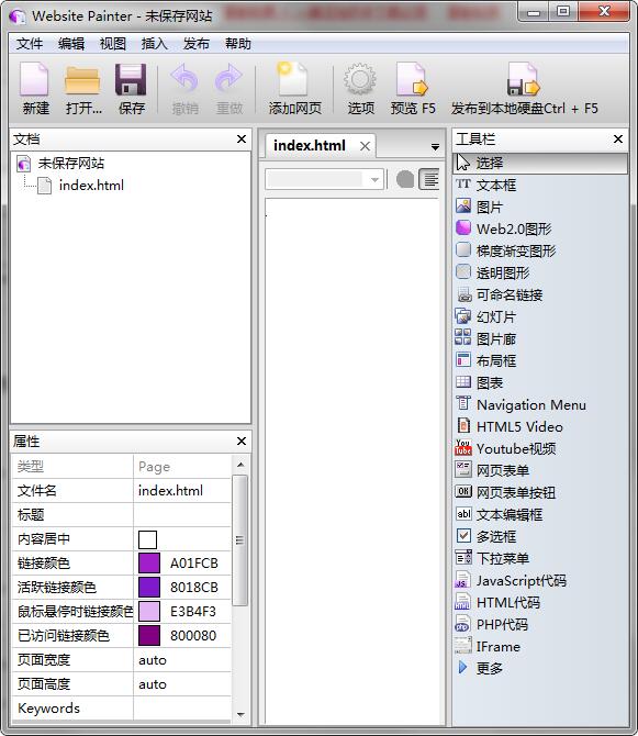 Website Painter中文版是一款专业高效的实用型可视化网页设计辅助工具,此款软件功能强劲,具备多种语言操作界面,Website Painter软件便捷好用,能够帮助用户轻松创建html网站,支持文字、图像、幻灯片等,所见即所得,不需要编写就可以轻松创建生成html代码。