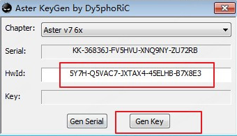 6、然后回到注册软件上,在第二行粘贴这个号码,点击这个【gen key】得到注册码,复制注册码。就是第三行的号码。