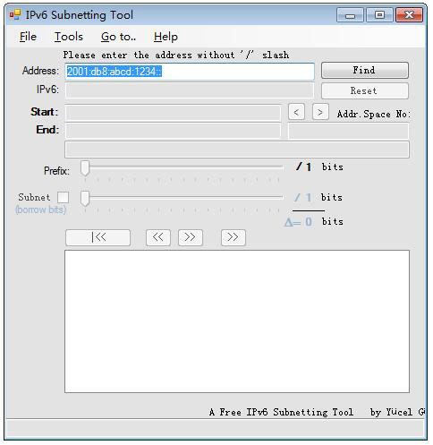 IPv6 Subnetting Tool,一款能够计算IPv6的子网掩码,完美支持IPv6,计算精准是划分子网的好工具,网络管理者不要错过,而且IPv6的128位地址通常写成8组,每组为四个十六进制数的形式,比如:AD80:0000:0000:0000:ABAA:0000:00C2:0002 是一个合法的IPv6地址。