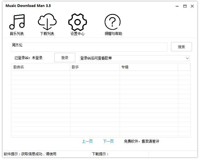 Music Download Man是专为QQ音乐打造的一款非常实用的高品质音乐下载工具,有了这款工具,我们就可以完全免费的下载到QQ音乐上的无损音乐、付费音乐等资源,随时随地保存到本地磁盘,用不着开通绿钻。
