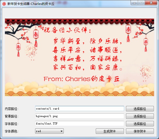 一、下载打开新年贺卡生成器官方版软件,点击选择路径设置贺卡的参数。