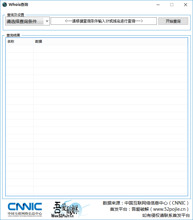 Whois查询是一款可以用来查询Whois信息的电脑工具,这里的Whois信息查询指的是IPV4/V6/AS自治域的Whois信息查询,有了它,你可以对任意一个IPV4/V6/AS自治域的Whois信息进行快速查询!