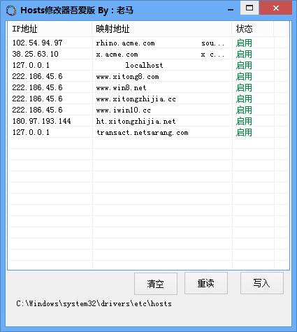 2、列表中可以显示当前Hosts文件中每一个地址的状态。