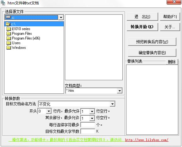 html文件转txt文档是一款非常好用的html文件转换txt软件,该软件可以帮助你将html、htm等网页格式文档格式转换txt文本格式,而且还支持转换参数调节,可以设置空行和最大字数,非常的好用。