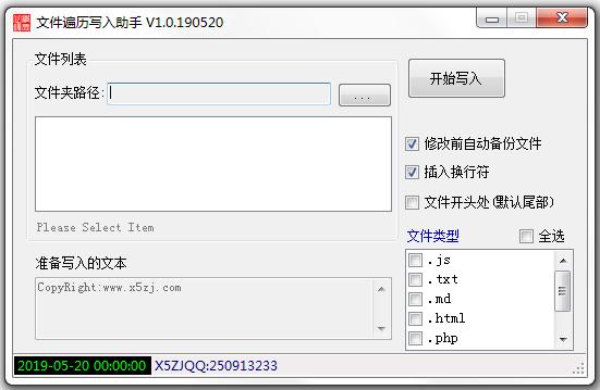 文件夹遍历写入助手是一款简便易用的文件管理工具,体积非常小才39KB,支持选定目标文件夹,将指定类型的文件指定位置加入自定义的文本,相信有不少的作用,默认自动备份和插入换行符,还有详细日志记录。