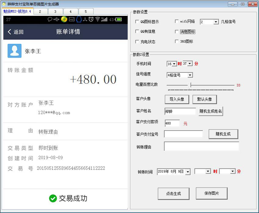 哔哔支付宝账单恶搞图片生成器是游客可以帮助用户来生成支付宝账单模拟截图软件。该软件操作简单,可以来进行自定义支付金额和帐户,可以拿来装x的节奏。