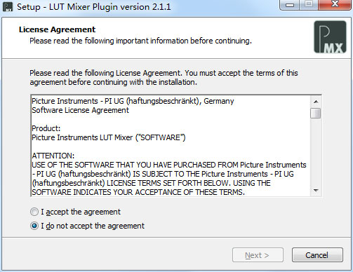 1.安装LUT Mixer Plugin 2.1.1.exe插件程序