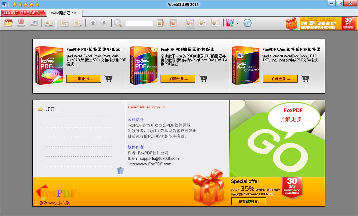 从FoxPDF Word Reader打开,查看和打印Word文件。
