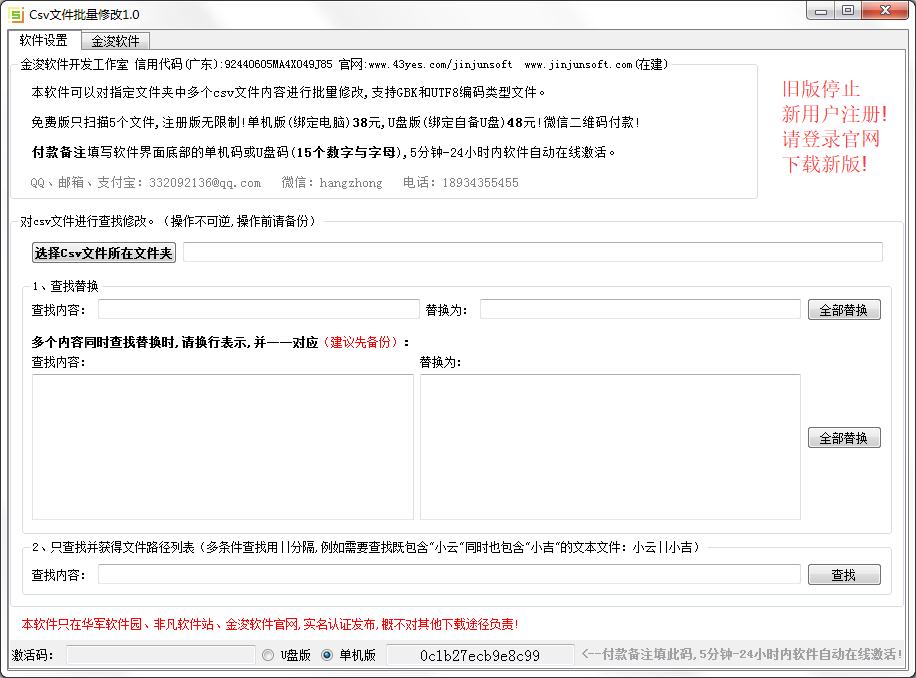CSV文件批量修改是一款专业实用的CSV文件内容批量修改软件,能够对指定文件夹中的多个csv文件内容批量进行查找替换,支持GBK、UTF8编码的文件,支持多个内容同时查找替换,并且确保查找内容和目标内容一一对应。