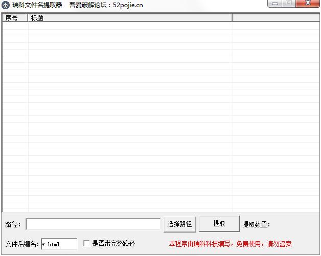 瑞科文件名提取器是一款专业可靠的文件名提取软件,可用于批量提取CSV表格文件,自动提取子目录,只需设置好提取路径,文件名后缀等信息,即可一键批量提取,支持提取文件全名和文件所在的目录名,导出csv表格即可。