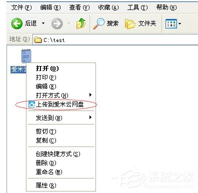 4、从系统文件夹中选择文件,右键菜单中“上传到爱米云网盘”。