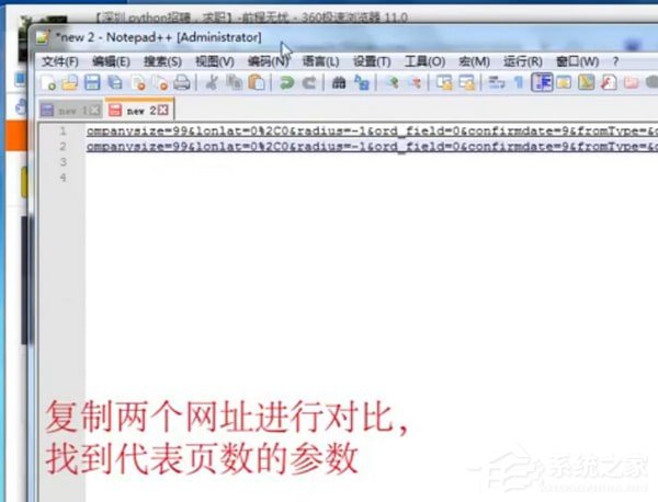 1、首先复制两个网址进行对比,找到代表页数的参数;