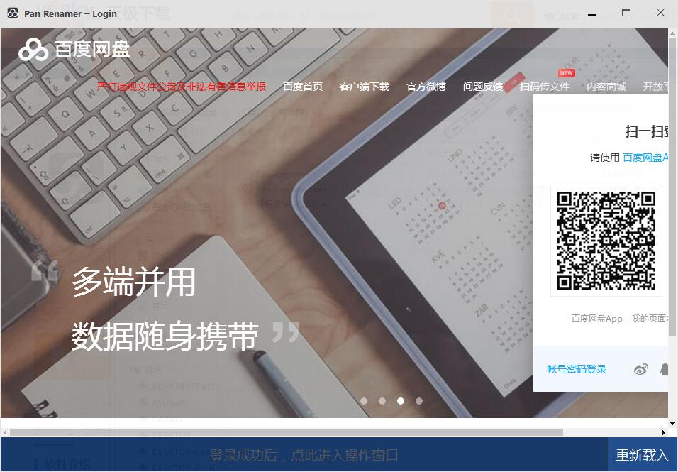 Pan Renamer是一款使用起来非常简单便捷的百度网盘批量重命名工具,设计严谨、功能强劲实用!软件还能够帮助用户批量修改百度网盘中的各种文件名和文件后缀,修改速度非常快!
