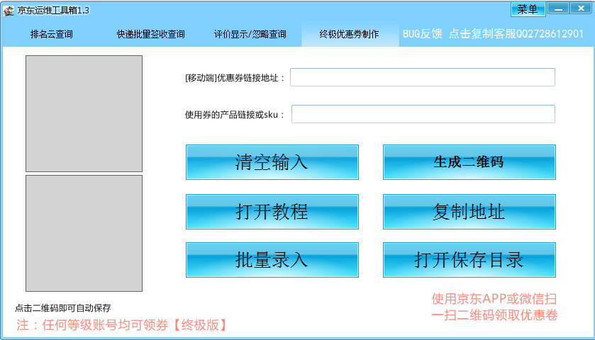 京东运维工具箱是针对京东卖家而打造的一款运营软件,该软件为广大用户提供了排名云查询、快递批量签收、评价显示/忽略查询、终极优惠券制作等功能,它可以让你的运营优化变得更轻松!