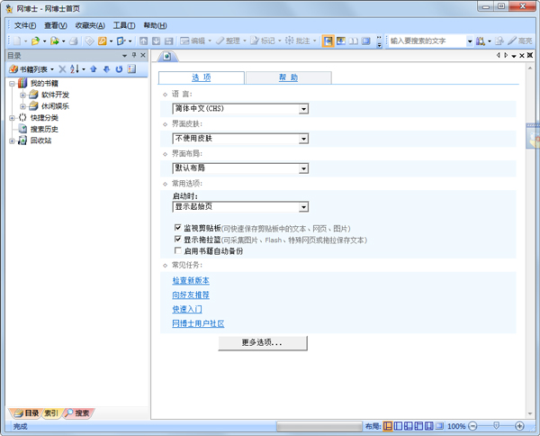 可把网博士管理的信息单个或批量导出为多种格式供不同用途使用,典型的如CHM文件。提供灵活的界面布局功能,支持并提供丰富的界面皮肤,软件界面和系统功能可灵活定制。完全与UNICODE兼容,支持IE8,Firefox3,Opera9.6等最新的浏览器。