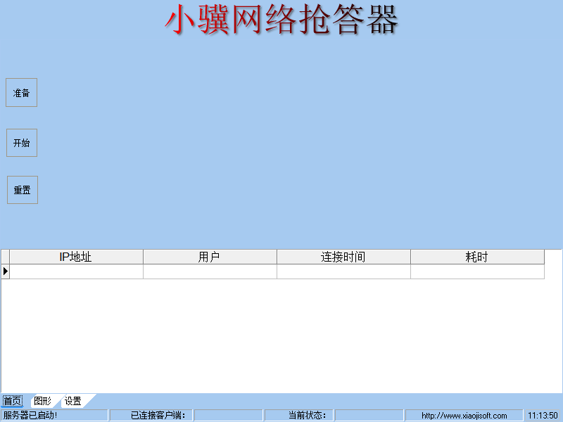 1、实际使用时,有一台微机作服务器,其他微机与服务器在同一局域网上可以进行抢答,参赛队数的多少仅取决于你的机器数与交换机的端口数。