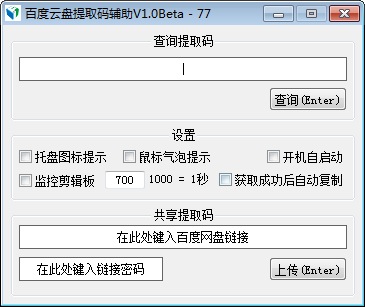 百度云盘提取码辅助是款针对百度网盘的提取码获取工具。它可以帮助用户破解别人设置的提取码,让用户可以免费获得网盘链接里面的资源,有喜欢的用户不要错过了。