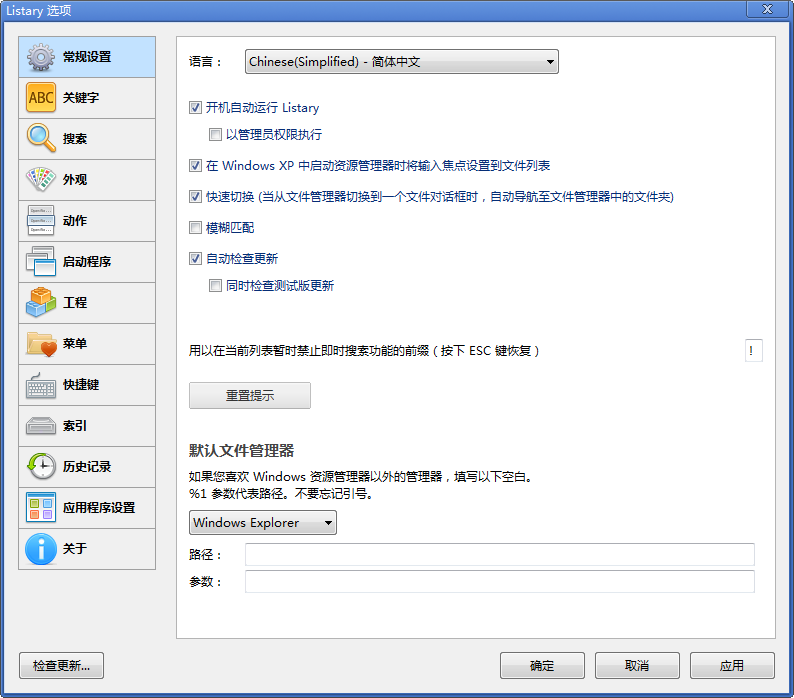 Listary 体积小巧,运行快速,不会拖慢速度。有中文界面,对中文的支持达到完美,而且也提供了中文的 “教学” 功能。