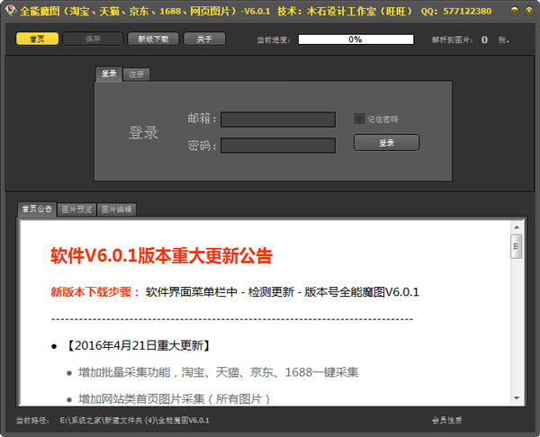 全能魔图魔手淘宝天猫描述图片下载器是一款可以快速的将店铺首页、描述、主图等图片信息抓取出来,支持淘宝、天猫!需要的朋友们可以下载试试吧!