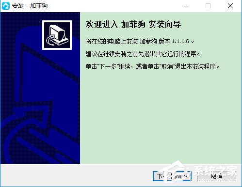1、在本站下载最新版的加菲狗安装包,双击运行;