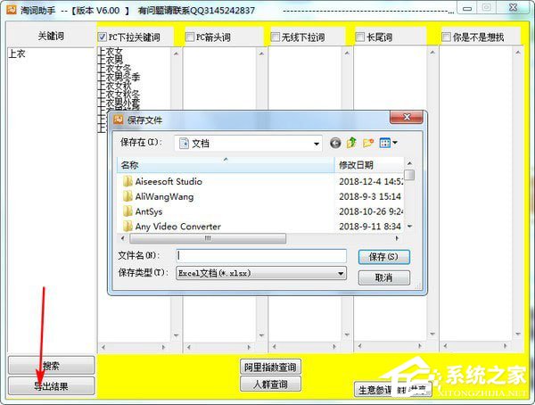 5、点击导出关键词,可以把搜索到的信息导出。