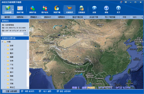 水经注万能地图下载器是成都水经注信息科技有限公司推出的一款基于谷歌、百度、必应、雅虎、高德、SOSO、诺基亚、天地图、搜狗、维基(OpenStreeMap)和E都市等十余个地图服务商服务器的多线程卫星地图下载拼接软件。