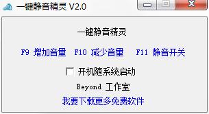 一键静音精灵是个免费的系统音量快速控制工具,一些键盘上没有音量增减的按键,所以你可以通过这个工具来实现快捷键控制系统音量,还可以一键静音,操作很简单,这样一来你就可以无需切换回桌面即可切换音量了,使用便捷,非常好用。