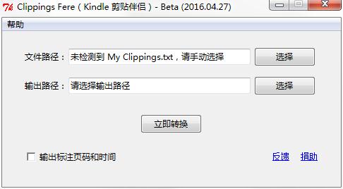 2、运行 Clippings Fere,软件会自动检测 My Clippings.txt 文件,若没检测到请手动选择;
