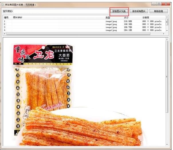 2、点击【获取图片列表】即可获取该商品的所有图片